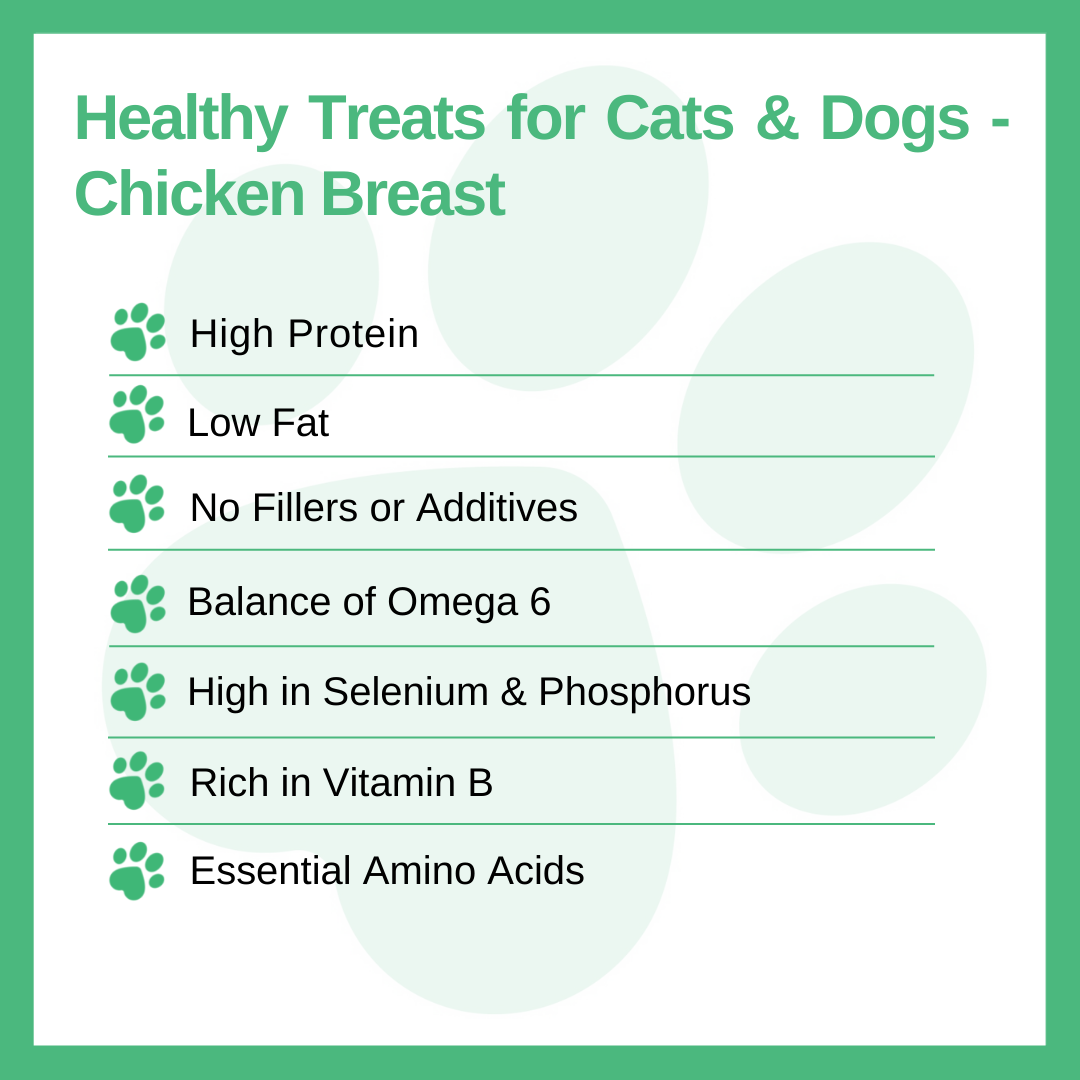 Looking for a natural and healthy treat for your furry friend? Our Chicken Breast Treats provide your pets an all round snack that tastes great and is great for their health, too.